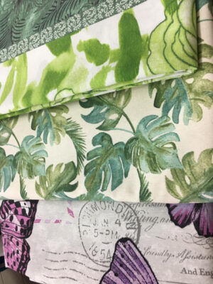Grand choix de tissus d’ameublement en 2.80 m de large et jusqu’à 3.20 m de large : – fleurs – rayures – carreaux – feuillages – motifs divers